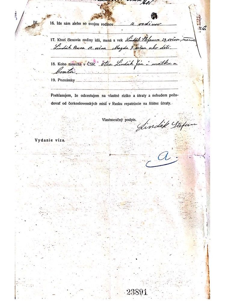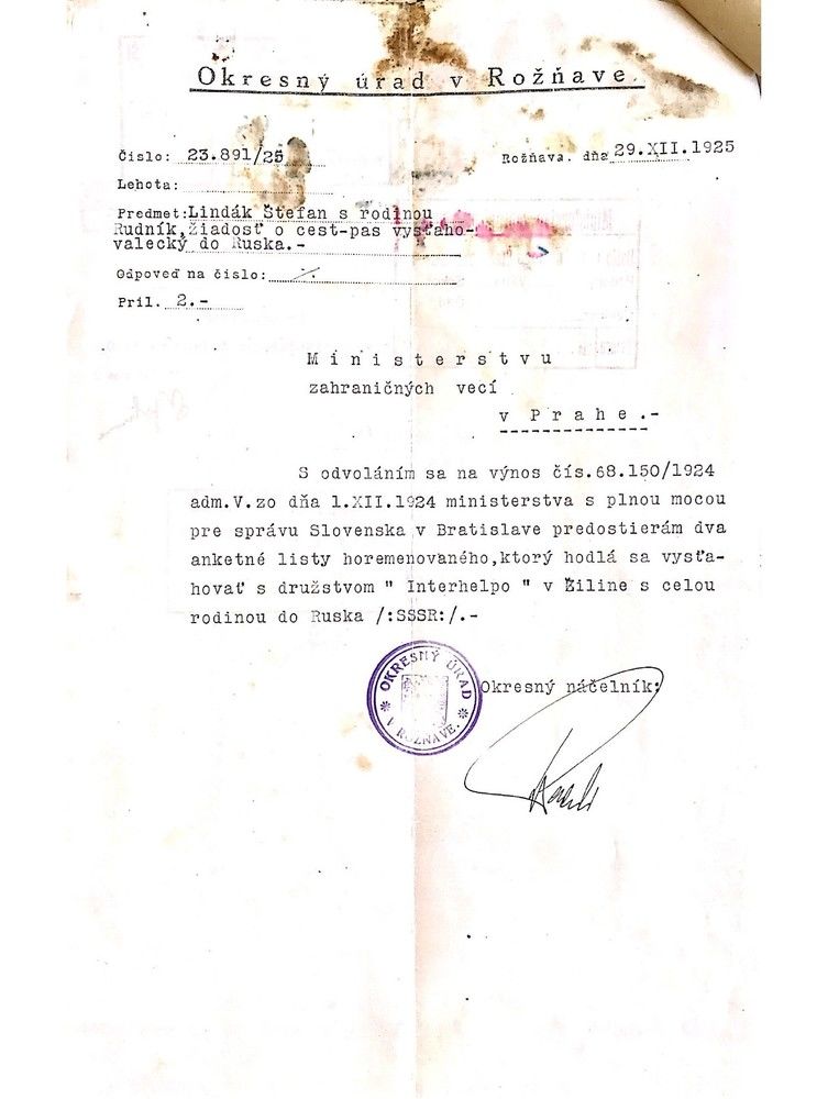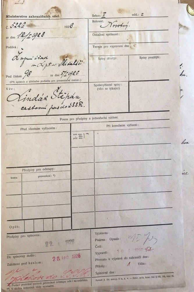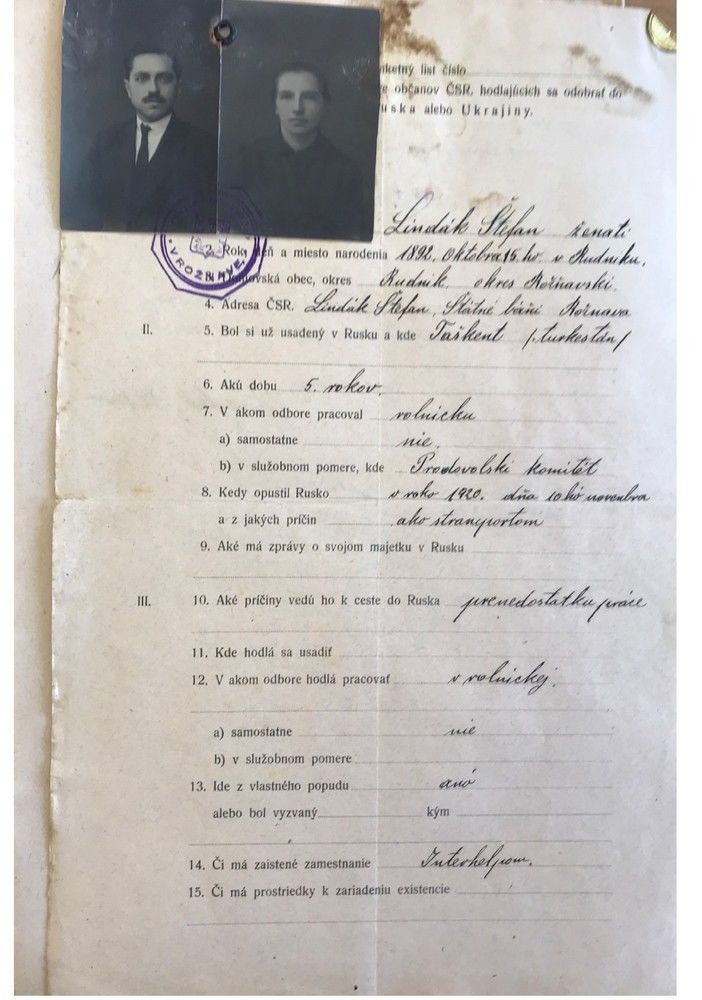 Štefan Lindák, zdroj: Národní archiv České republiky, fond Ministerstva zahraničních věcí - Ruská pomocná akce, Praha