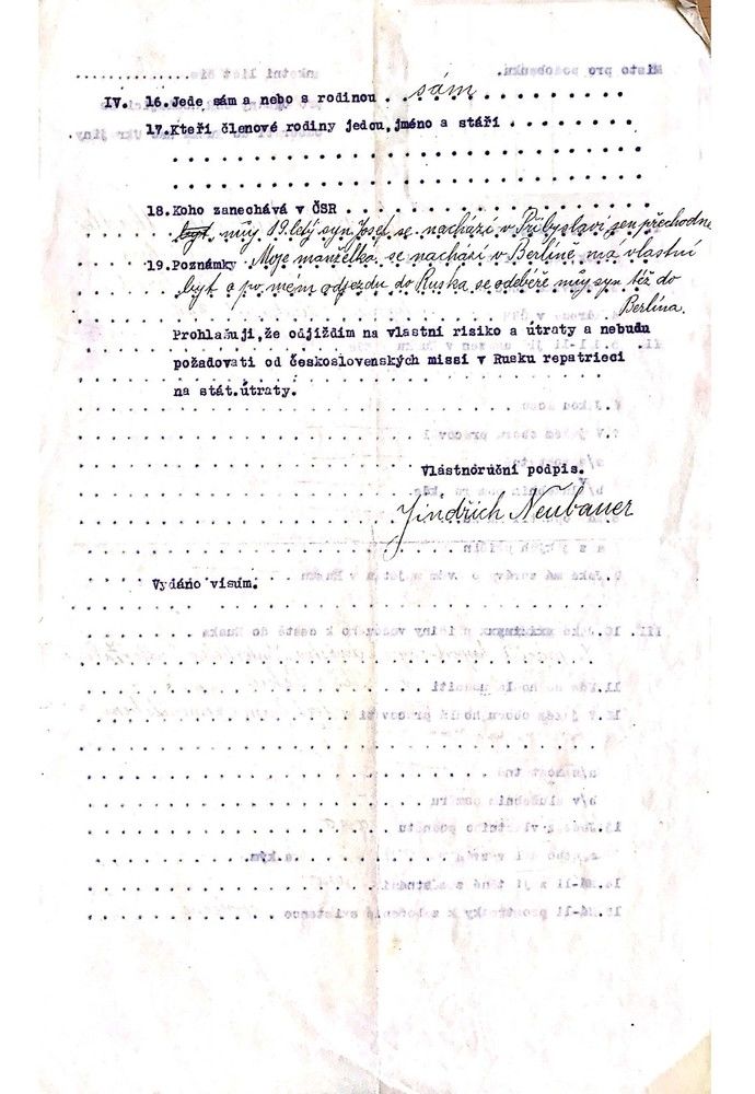 Pracoval ve městě Džalal-Abad v dnešním Kyrgyzstánu jako tkalcovský mistr. V červnu roku 1941 byl zatčen za antisovětskou agitaci a odsouzen k osmi letům vězení. Od té doby nezvěstný. V archivním spisu se objevuje poznámka, že jeho případ měl být 20. listopadu roku 1958 přerušen a zrušen.