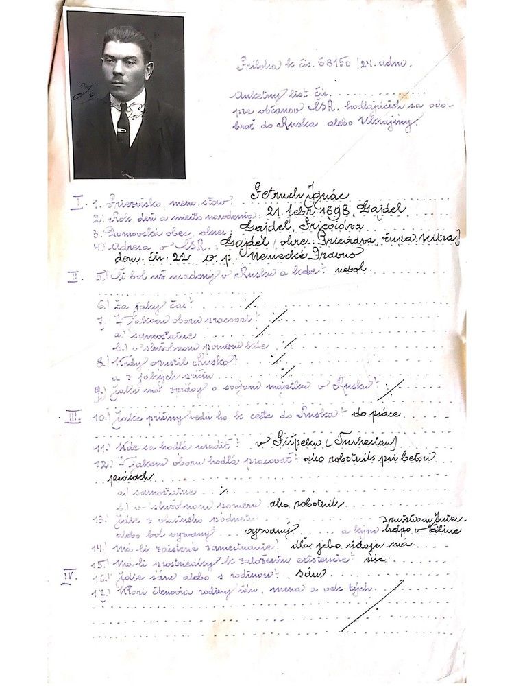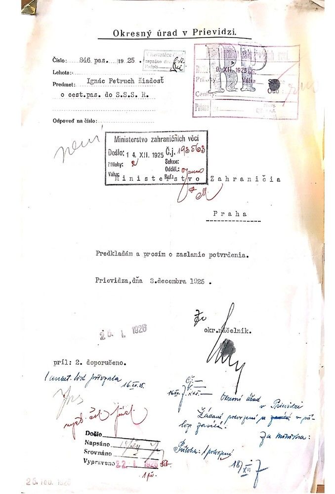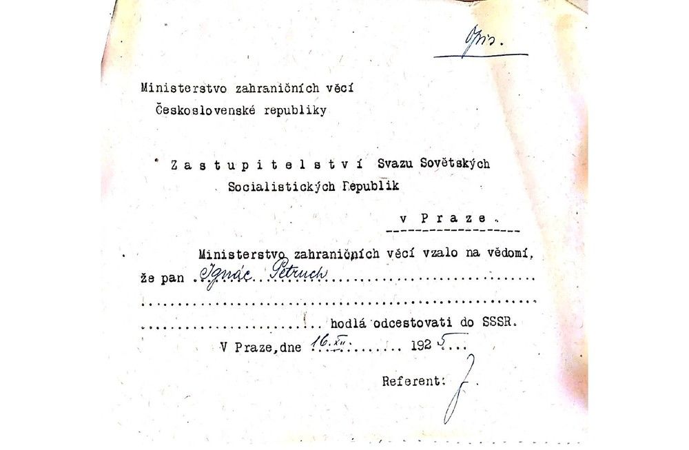 Ignác Petruch, zdroj: Národní archiv České republiky, fond Ministerstva zahraničních věcí - Ruská pomocná akce, Praha