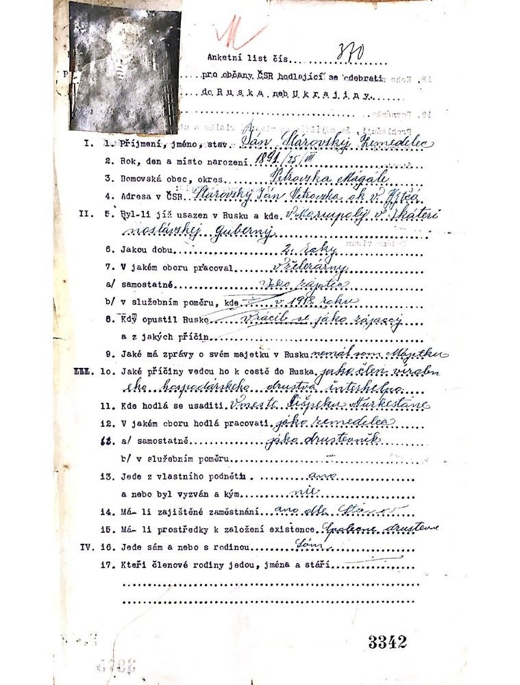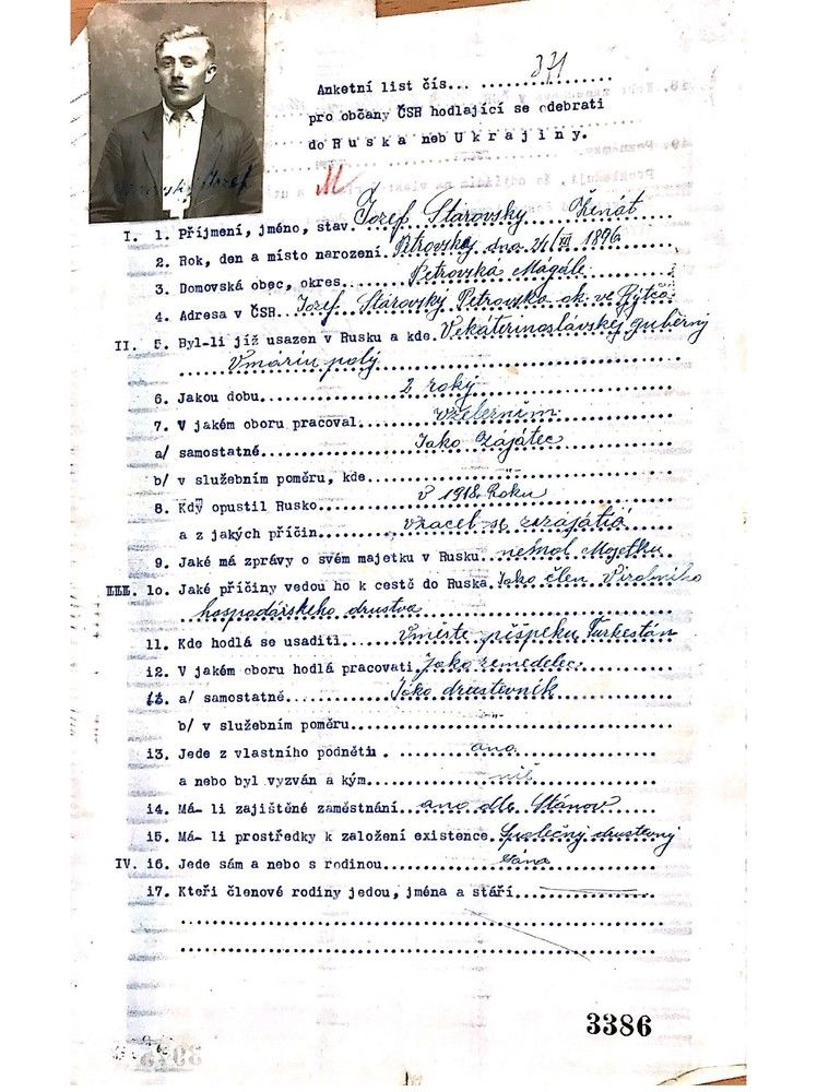 Josef Starovský, zdroj: Národní archiv České republiky, fond Ministerstva zahraničních věcí - Ruská pomocná akce, Praha