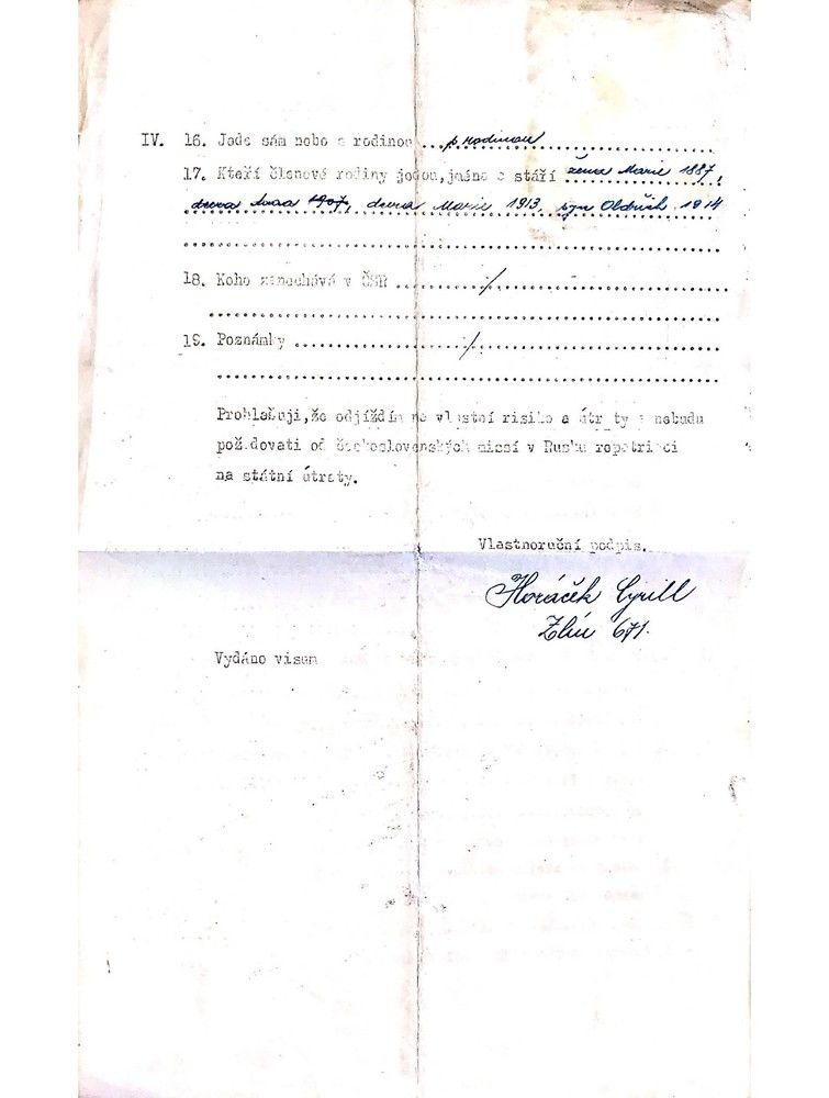Jeho jméno se objevuje na seznamu obětí represí, který v knize Z historie československých vystěhovaleckých družstev v Sovětském svazu (1923-1939) z roku 2015 uvádí Dušan Janák a Zdeněk Jirásek. Autorům se podařilo v rámci výzkumu v Ruském státním archivu sociálně-politických dějin získat složku Cyrila Horáčka. Víme tak, že nedlouho po příjezdu do Pišpeku odjel z důvodů nevhodných klimatických podmínek do Rostova na Donu a následně do Jaroslavi, kde pracoval jako dělník. Jako člen Komunistické strany Československa měl být přijat do bolševické strany. K tomu došlo až na podzim roku 1928, ale hodnocení Filipa Švolíka z roku 1925, ve kterém Cyrila Horáčka označuje za “cizí element”, zřejmě sehrálo roli v jeho dalším osudu. V roce 1932 byl odsouzen na dva roky. Trest si odpykal a měl být vyhoštěn ze Sovětského svazu, přesto zůstal pod dohledem GPU v Archangelsku. Až díky spolupráci s československými diplomaty mu byl umožněn návrat do Československa, což mu zřejmě zachránilo život.