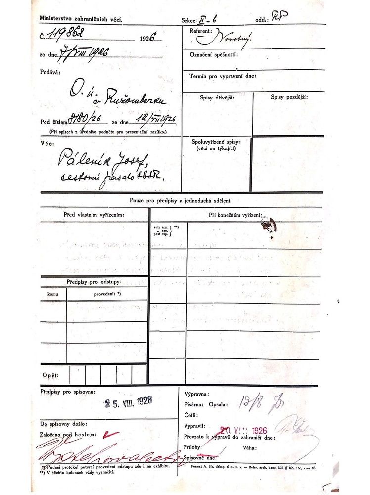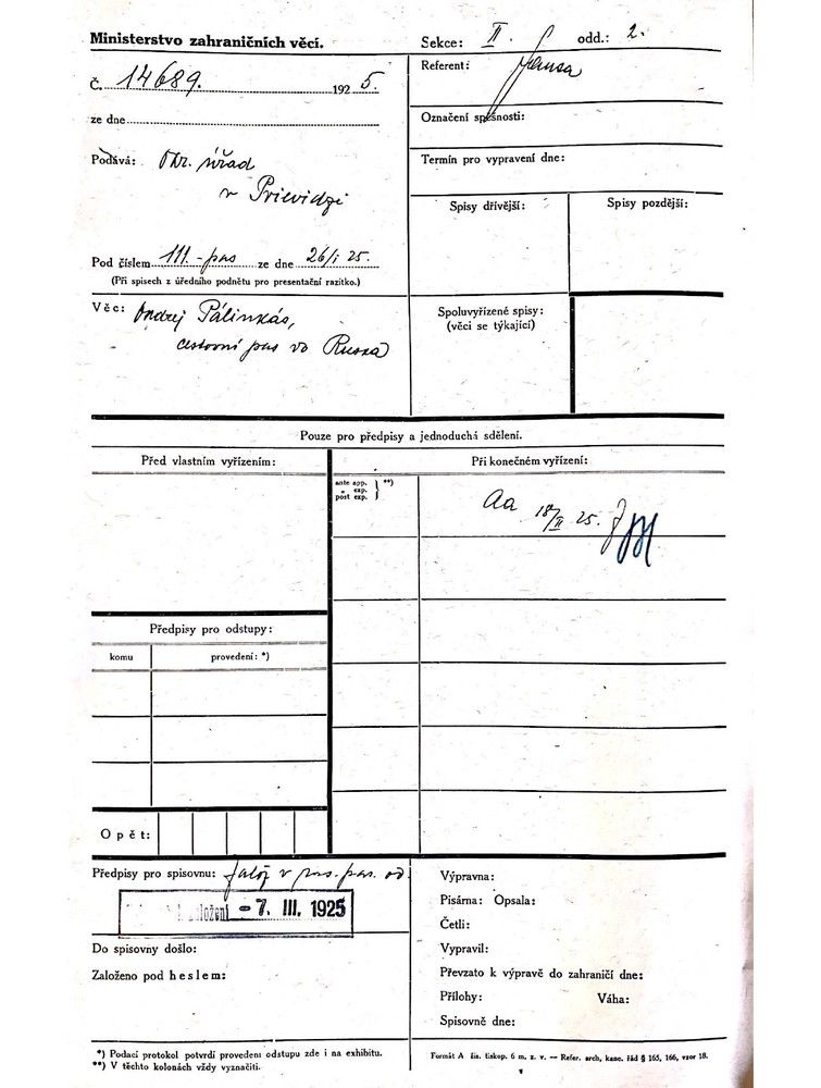 Ondrej Pálinkáš, zdroj: Národní archiv České republiky, fond Ministerstva zahraničních věcí - Ruská pomocná akce, Praha