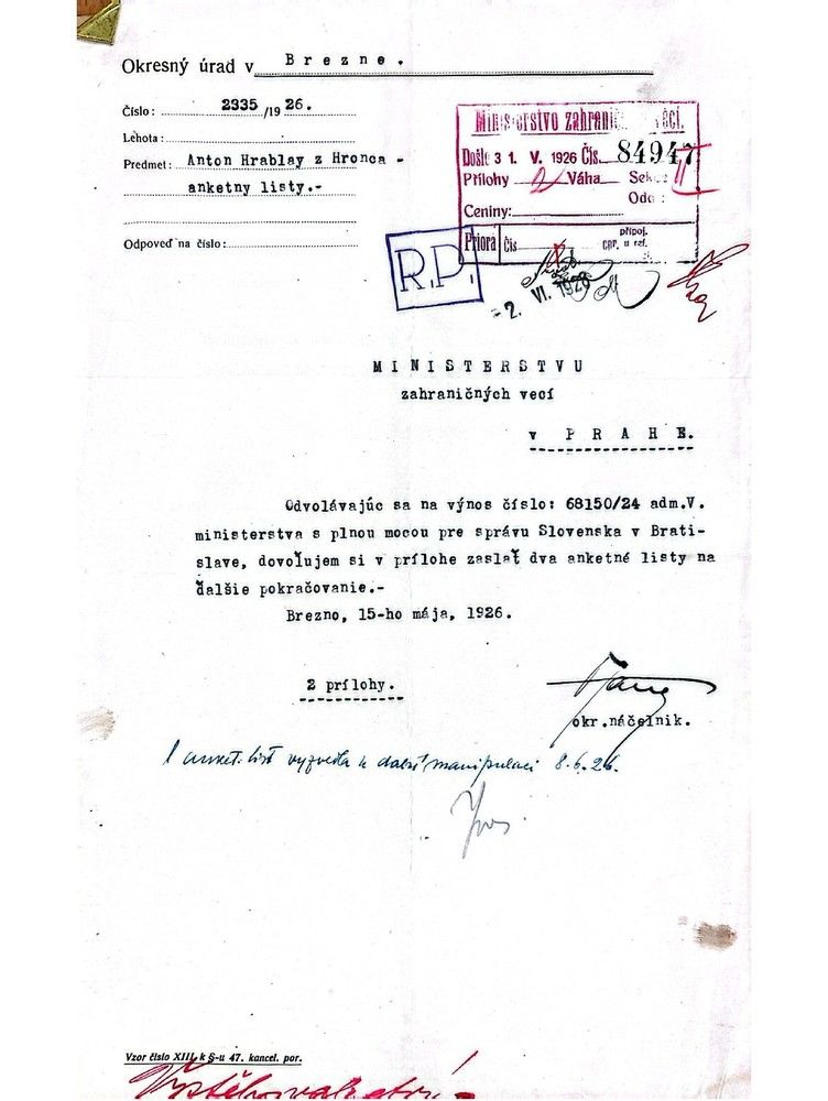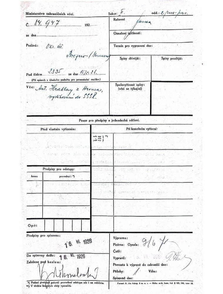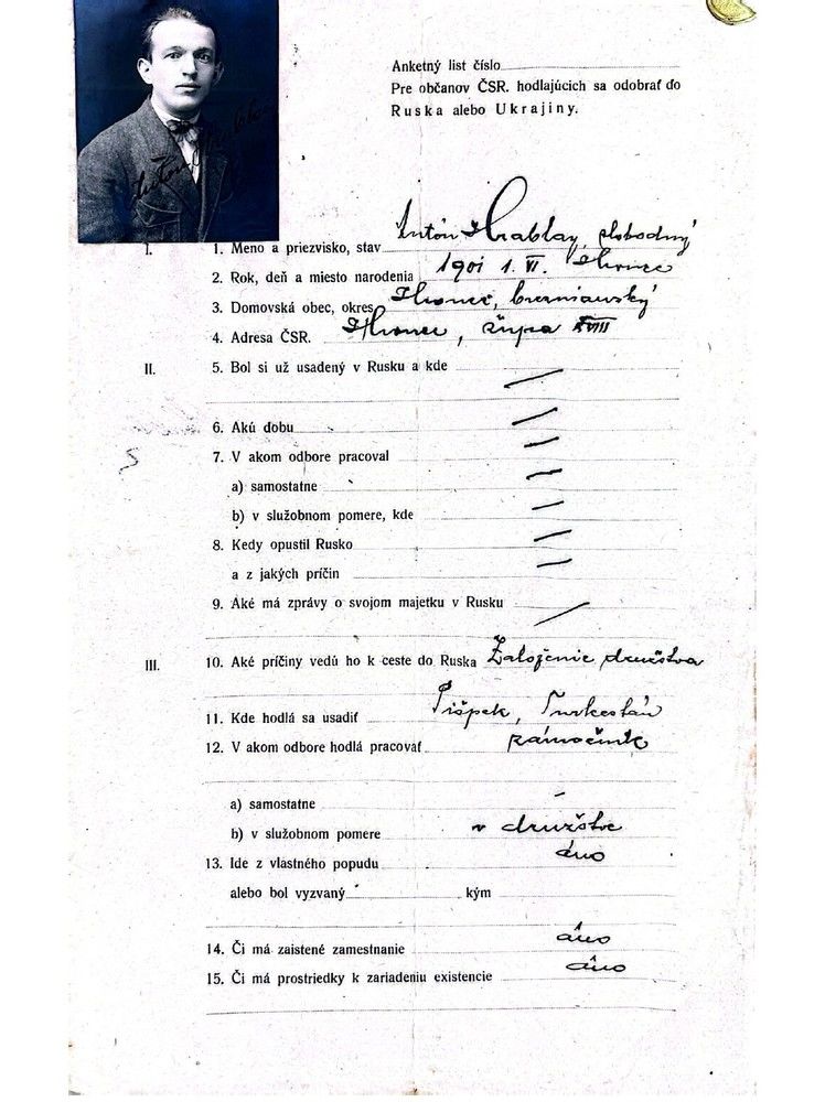 Anton Hrablay, zdroj: Národní archiv České republiky, fond Ministerstva zahraničních věcí - Ruská pomocná akce, Praha